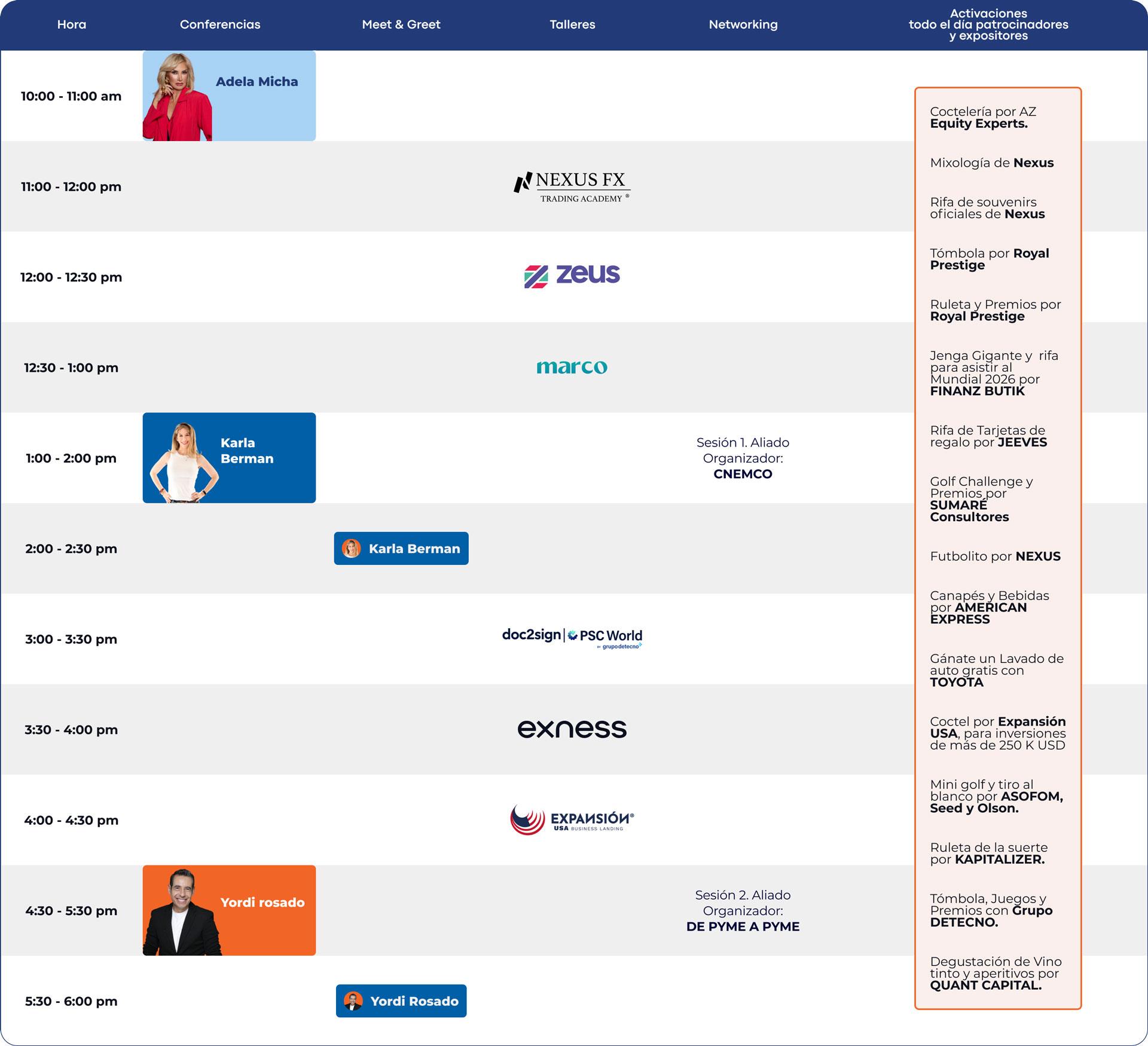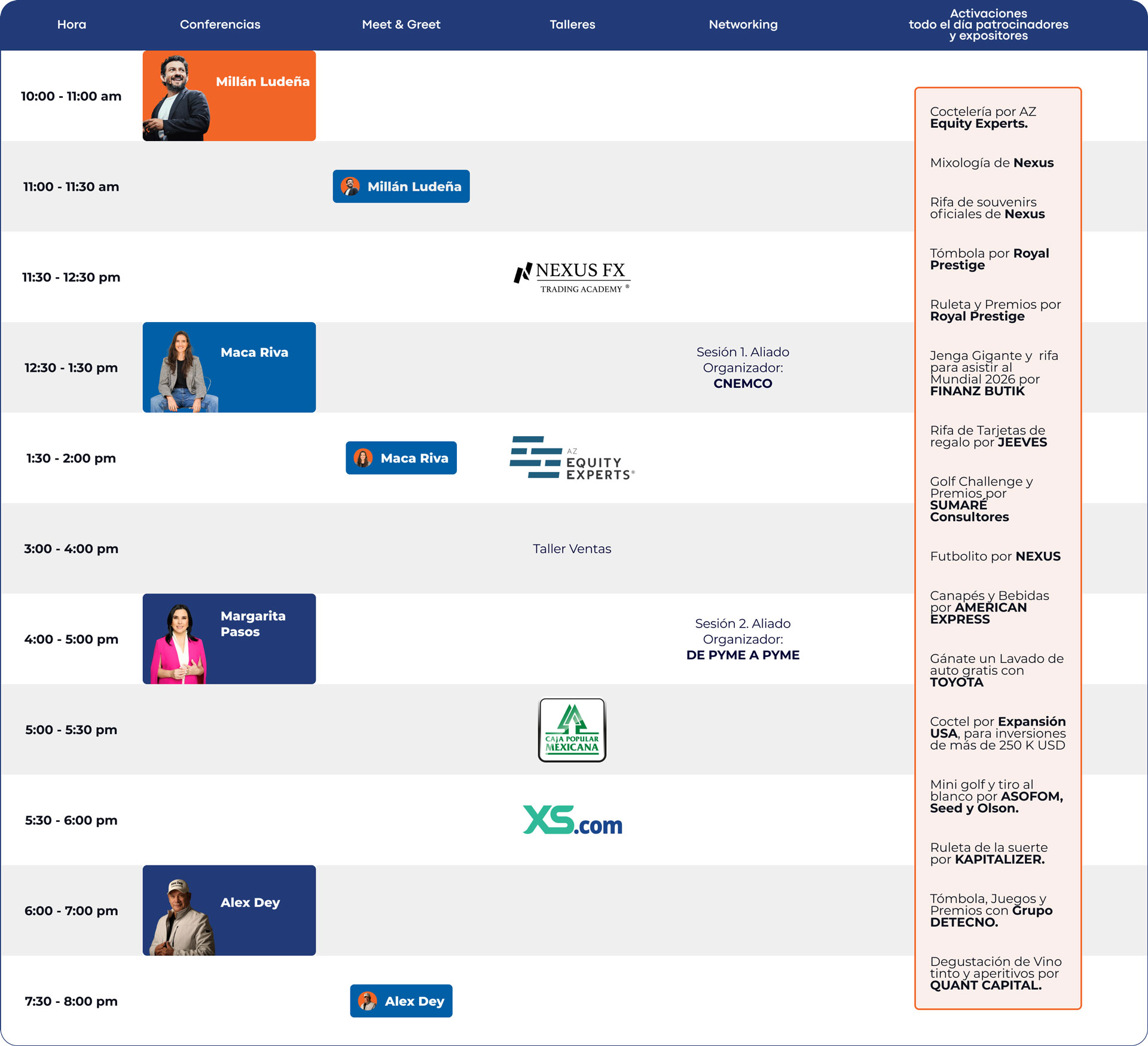 El evento contará con conferencias magistrales CON COSTO, talleres, experiencias de coctel bar networking, centro de negocios y sesiones de “meet & greet” con ponentes y expositores con acceso gratis.